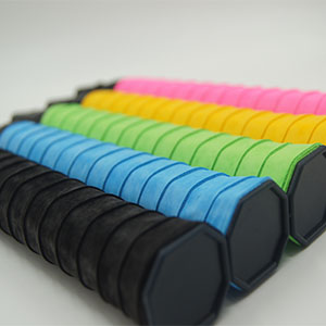 吸汗帶(外柄皮,也稱握手皮、固手膠)是裹在拍柄最外一層和我們的手直接接觸的那一層膠布。它的作用首先是保護(hù)昂貴的內(nèi)柄皮不受直接的磨損和腐蝕,同時(shí)也使我們握拍的時(shí)候獲得更為舒適、牢固、吸汗防滑的手感。通常外柄皮在網(wǎng)球拍出廠時(shí)不會(huì)配備,而需要自己后配。