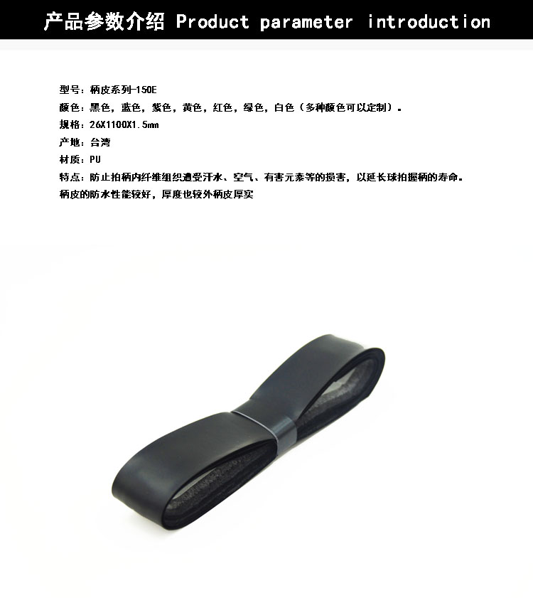 功能:表面壓紋,PU材質,羽毛球拍,網球拍,釣魚桿,壁球拍等都可以用,100%優質成份,手感舒適,超級實用。